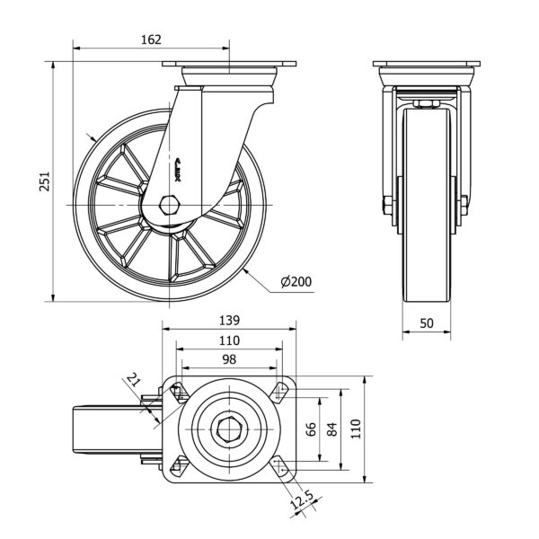 Rueda poliuretano giratoria Alex diametro 200 mm. modelo 2-3608 EAN 8422202236087