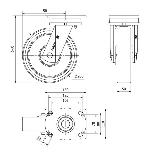 Rueda poliuretano giratoria Alex diametro 200 mm. modelo 2-3664 EAN 8422202236643