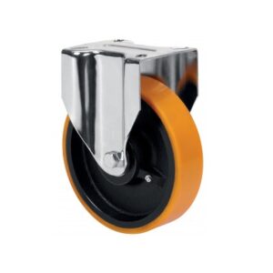 La serie de ruedas Alex ZVR-HU son ruedas con el núcleo de acero y la banda de poliuretano fundido de dureza 95º shore A, indicadas para soportar cargas hasta 700 Kg. Se utilizan en útiles de transporte logístico, carros de herramientas, empresas de alimentación, barredoras, pulidoras, maquinaria pesada, grúas móviles, mesas elevadoras, caldererías y contenedores. HU: Gran capacidad de carga con alta absorción a los golpes. Condiciones de pavimento desfavorables. Superficies rugosas, quebradas, con virutas metálicas, manchas de aceite, cristales, grasas, grava.