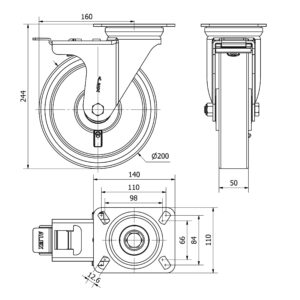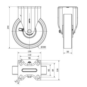 Rueda poliuretano giratoria Alex diametro 200 mm. modelo 2-3869