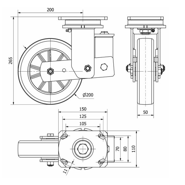 Rueda poliuretano giratoria Alex diametro 200 mm. modelo 2-3949