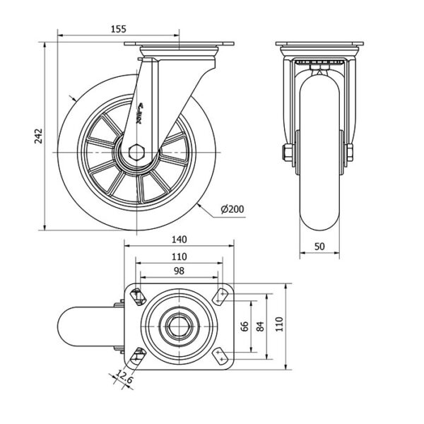 Rueda poliuretano giratoria Alex diametro 200 mm. modelo 2-3983 EAN 8422202239835