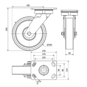 Rueda poliuretano giratoria Alex diametro 200 mm. modelo 4-0151