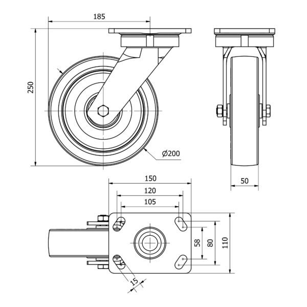 Rueda poliuretano giratoria Alex diametro 200 mm. modelo 4-0941