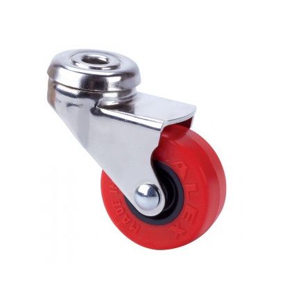 La serie de ruedas Alex BD-PPI son ruedas rojas de poliuretano inyectado blando, indicadas para soportar cargas de hasta 40 Kg. Se utilizan en muebles pequeños, expositores, vitrinas, mesas de ordenador, mesillas de noche y archivadores. PPI: Silenciosa, indeformable y de fácil desplazamiento.
