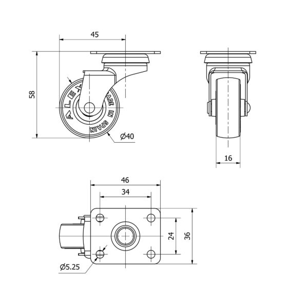Rueda poliuretano giratoria Alex diametro 40 mm. modelo 2-2564