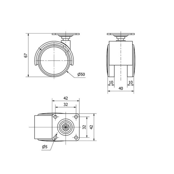 Rueda poliuretano giratoria Alex diametro 50 mm. modelo 1-0642