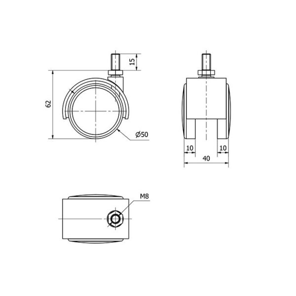Rueda poliuretano giratoria Alex diametro 50 mm. modelo 1-0644