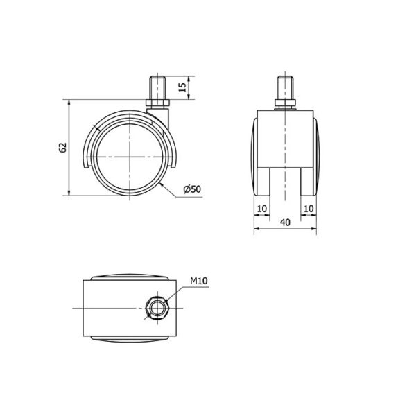 Rueda poliuretano giratoria Alex diametro 50 mm. modelo 1-0645