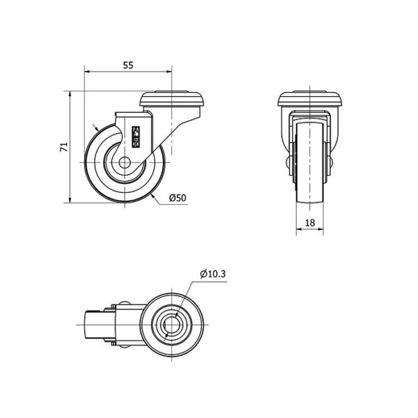 Rueda poliuretano giratoria Alex diametro 50 mm. modelo 1-0734