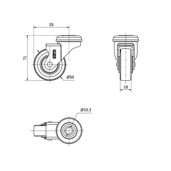 Rueda poliuretano giratoria Alex diametro 50 mm. modelo 1-0748