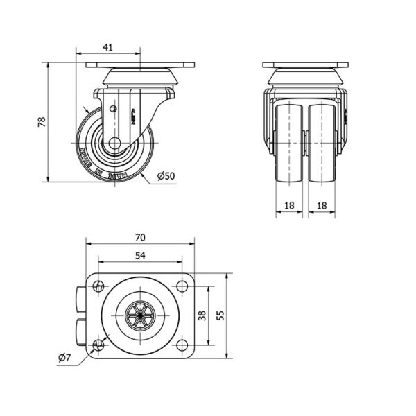 Rueda poliuretano giratoria Alex diametro 50 mm. modelo 1-0790