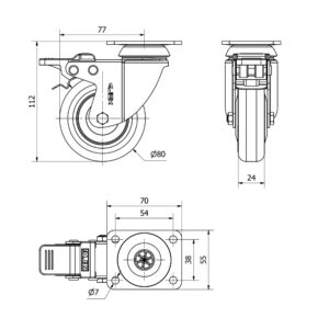 Rueda poliuretano giratoria Alex diametro 60 mm. modelo 2-2525