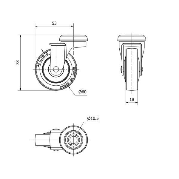 Rueda poliuretano giratoria Alex diametro 60 mm. modelo 2-2573