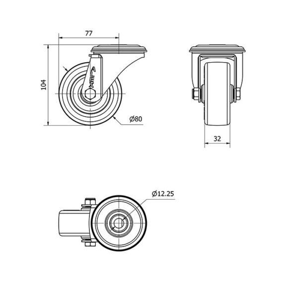 Rueda poliuretano giratoria Alex diametro 80 mm. modelo 2-4073