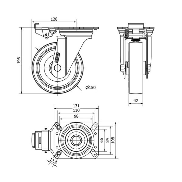 Rueda poliuretano giratoria con bloqueo direccional Alex diametro 150 mm. modelo 2-3342 EAN 8422202233420