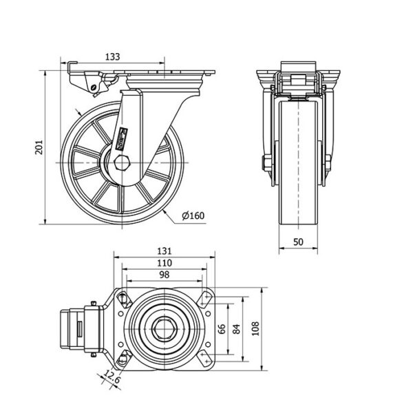 Rueda poliuretano giratoria con bloqueo direccional Alex diametro 160 mm. modelo 2-3338 EAN 8422202233383