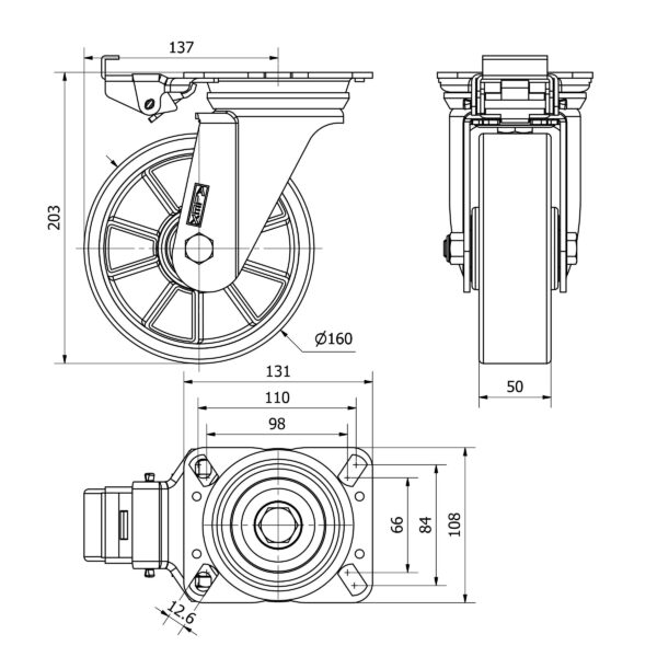 Rueda poliuretano giratoria con bloqueo direccional Alex diametro 160 mm. modelo 2-3852 EAN 8422202238524