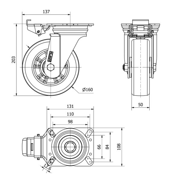 Rueda poliuretano giratoria con bloqueo direccional Alex diametro 160 mm. modelo 2-3923 EAN 8422202239231