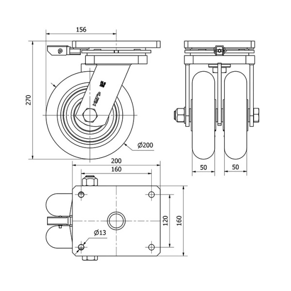 Rueda poliuretano giratoria con bloqueo direccional Alex diametro 200 mm. 2-0049