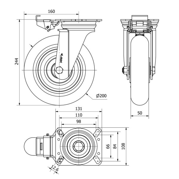 Rueda poliuretano giratoria con bloqueo direccional Alex diametro 200 mm. modelo 2-3864