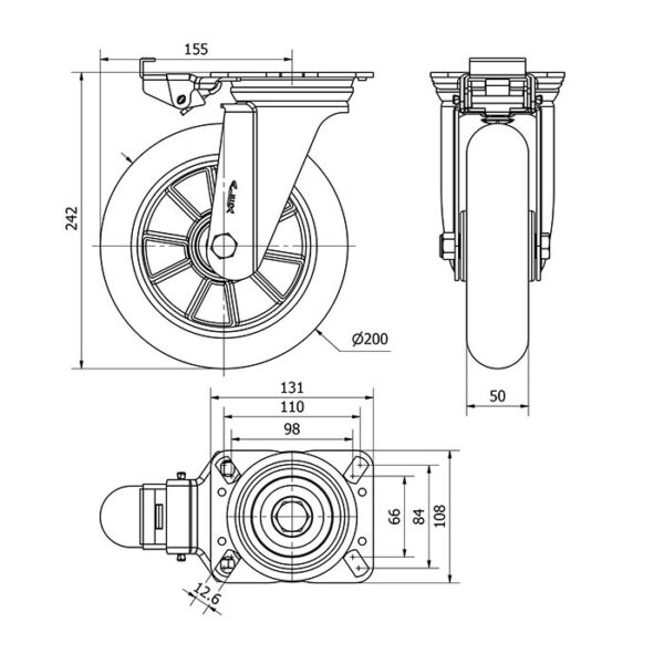 Rueda poliuretano giratoria con bloqueo direccional Alex diametro 200 mm. modelo 2-3986