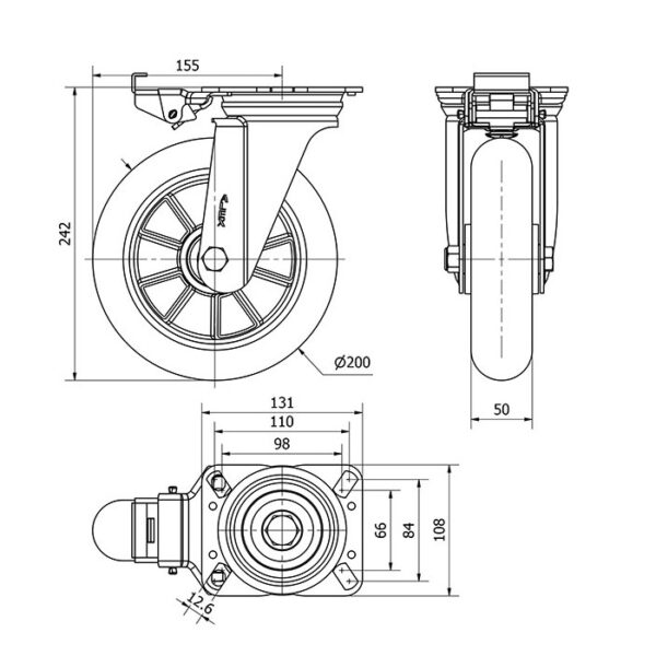 Rueda poliuretano giratoria con bloqueo direccional Alex diametro 200 mm. modelo 2-4397 EAN 8422202243979