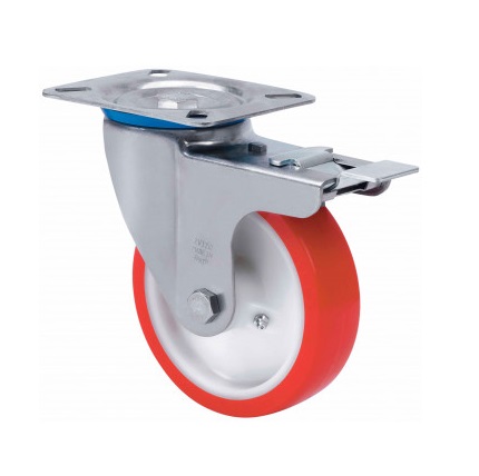 Rueda poliuretano giratoria con freno Alex diametro 100 mm. modelo 2-1839