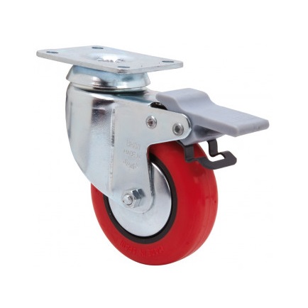 La serie de ruedas Alex BH-PPI son de de poliuretano rojo inyectado, indicadas para soportar cargas hasta 100 Kg. Se utilizan en supermercados, cajas apilables, taburetes, vitrinas, percheros, carros de hostelería, taburetes, mobiliario clínico sanitario y goteros. PPI: Silenciosas e indeformables y de fácil desplazamiento con carga.