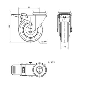 Rueda poliuretano giratoria con freno Alex diametro 100 mm. modelo 2-4732 EAN 8422202247328