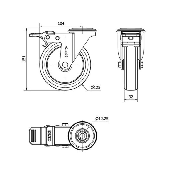 Rueda poliuretano giratoria con freno Alex diametro 125 mm. modelo 2-4902