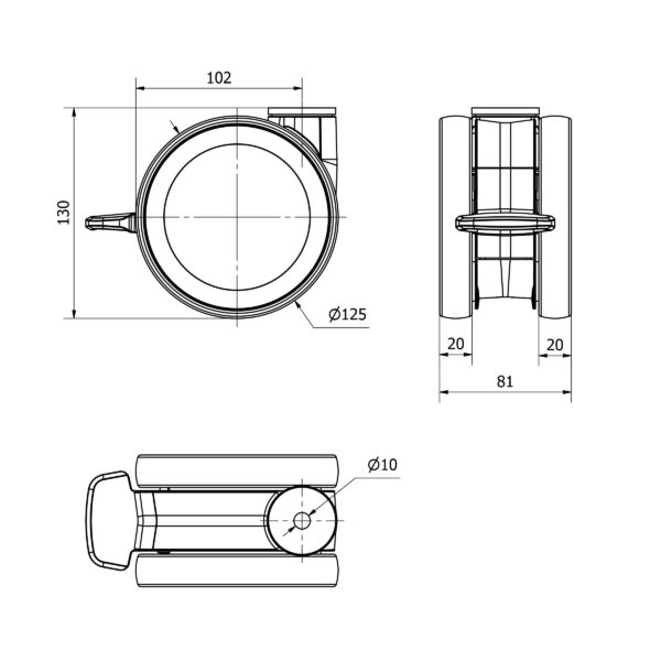 Rueda poliuretano giratoria con freno Alex diametro 125 mm. modelo 2-4989