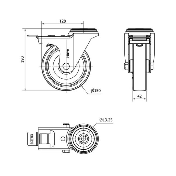 Rueda poliuretano giratoria con freno Alex diametro 150 mm. modelo 2-2032