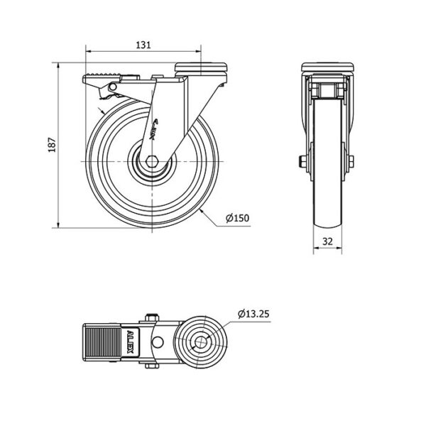 Rueda poliuretano giratoria con freno Alex diametro 150 mm. modelo 2-3588