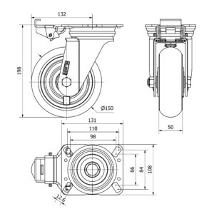 Rueda poliuretano giratoria con freno Alex diametro 150 mm. modelo 2-3859 EAN 8422202238593