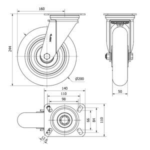 Rueda poliuretano giratoria con freno Alex diametro 150 mm. modelo 2-3859