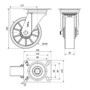 La serie de ruedas Alex ZVR-AUB son ruedas con el núcleo de aluminio y la banda de poliuretano fundido de dureza 95º shore A, indicadas para soportar cargas hasta 700 Kg. Se utilizan en útiles de transporte logístico, carros de herramientas, empresas de alimentación, barredoras, pulidoras, maquinaria pesada, grúas móviles, mesas elevadoras, caldererías y contenedores. AUB: Poliuretano de gran capacidad de carga y buena absorción de golpes.