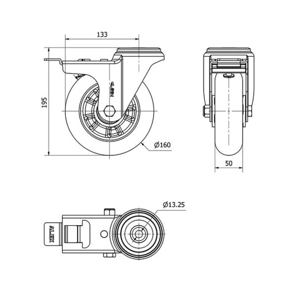Rueda poliuretano giratoria con freno Alex diametro 160 mm. modelo 2-3975 EAN 8422202239750