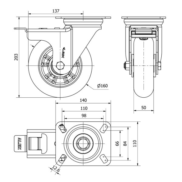 Rueda poliuretano giratoria con freno Alex diametro 160 mm. modelo 2-4382