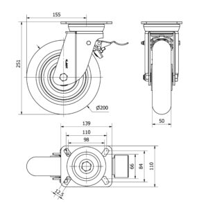 Rueda poliuretano giratoria con freno Alex diametro 200 mm. modelo 2-3533 EAN 8422202235332