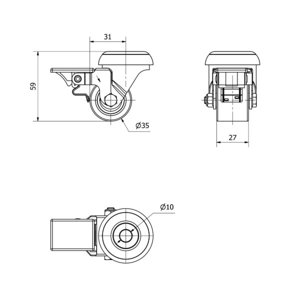 Rueda poliuretano giratoria con freno Alex diametro 35 mm. modelo 2-4667