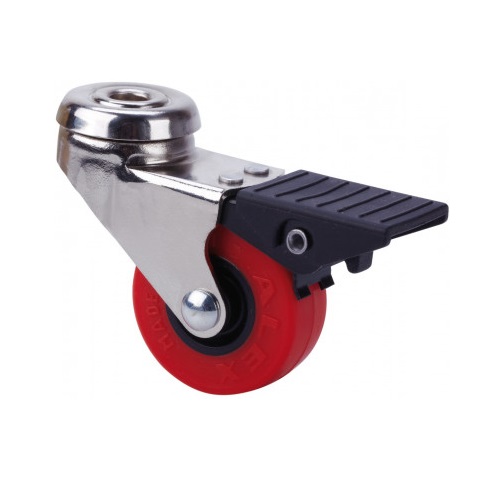 La serie de ruedas Alex BD-PPI son ruedas rojas de poliuretano inyectado blando, indicadas para soportar cargas de hasta 40 Kg. Se utilizan en muebles pequeños, expositores, vitrinas, mesas de ordenador, mesillas de noche y archivadores. PPI: Silenciosa, indeformable y de fácil desplazamiento.
