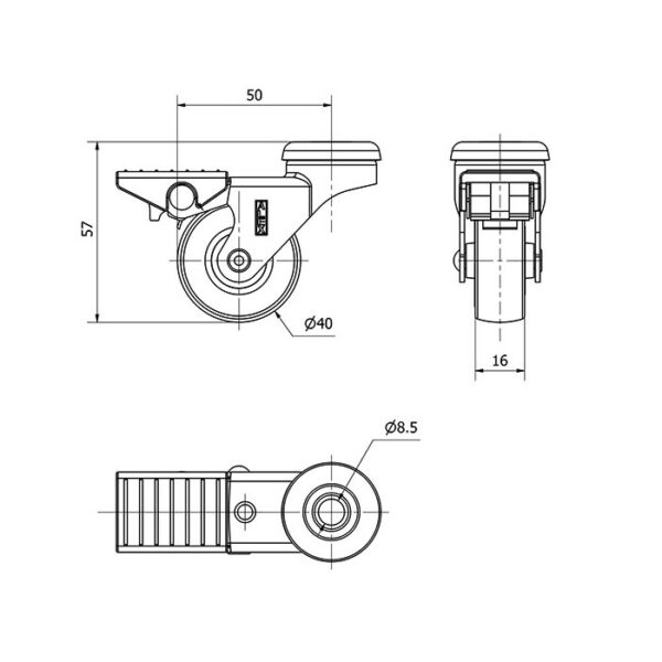 Rueda poliuretano giratoria con freno Alex diametro 40 mm. modelo 1-0753