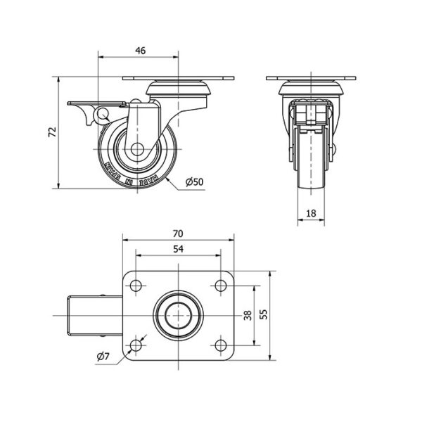 Rueda poliuretano giratoria con freno Alex diametro 50 mm. modelo 1-0554 EAN 8422202105543