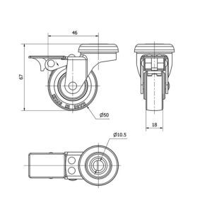 Rueda poliuretano giratoria con freno Alex diametro 50 mm. modelo 1-0557