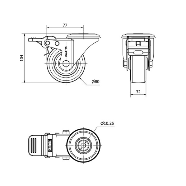 Rueda poliuretano giratoria con freno Alex diametro 80 mm. 2-0332