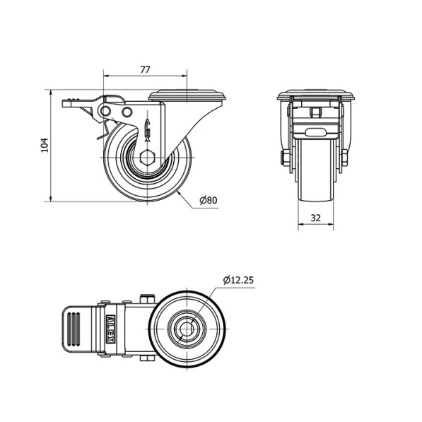 Rueda poliuretano giratoria con freno Alex diametro 80 mm. 2-0341
