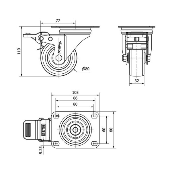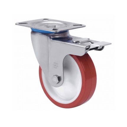 Rueda poliuretano giratoria con freno Alex diametro 80 mm. modelo 2-2428