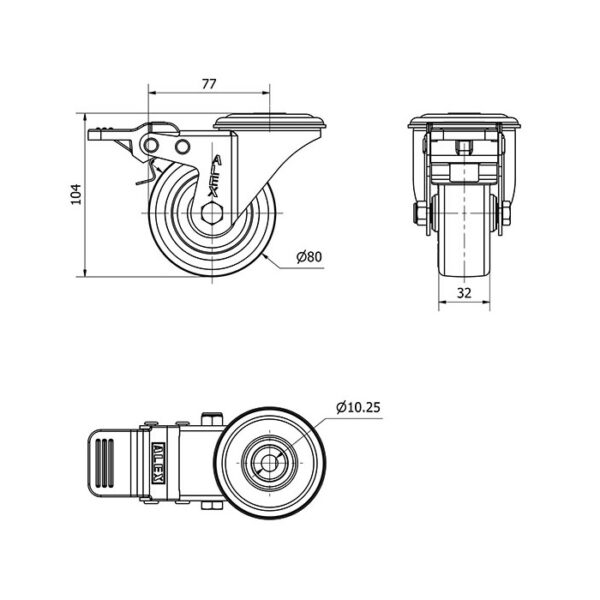 Rueda poliuretano giratoria con freno Alex diametro 80 mm. modelo 2-2859