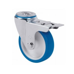 La serie de ruedas Alex ZVI INOX-POA son de poliuretano inyectado blando azul, con todos sus componentes de acero inoxidable (AISI-304), indicadas para soportar cargas hasta 250 Kg. Se utilizan en exteriores, carros de transporte de alimentación, cantinas, comedores, restaurantes, empresas de alimentación, máquinas de embalajes, cintas transportadoras, construcciones inoxidables, maquinaria ligera para la construcción, contenedores, jaulas de transporte, granjas avícolas, químicas, cadenas alimentación, frigoríficos, arcones y congeladores. POA: Silenciosa, limpia y elástica, con gran duración al desgaste. Alta resistencia a los aceites y grasas..